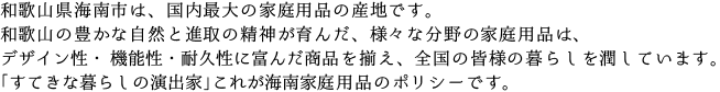 「すてきな暮らしの演出家」これが海南家庭用品のポリシーです。